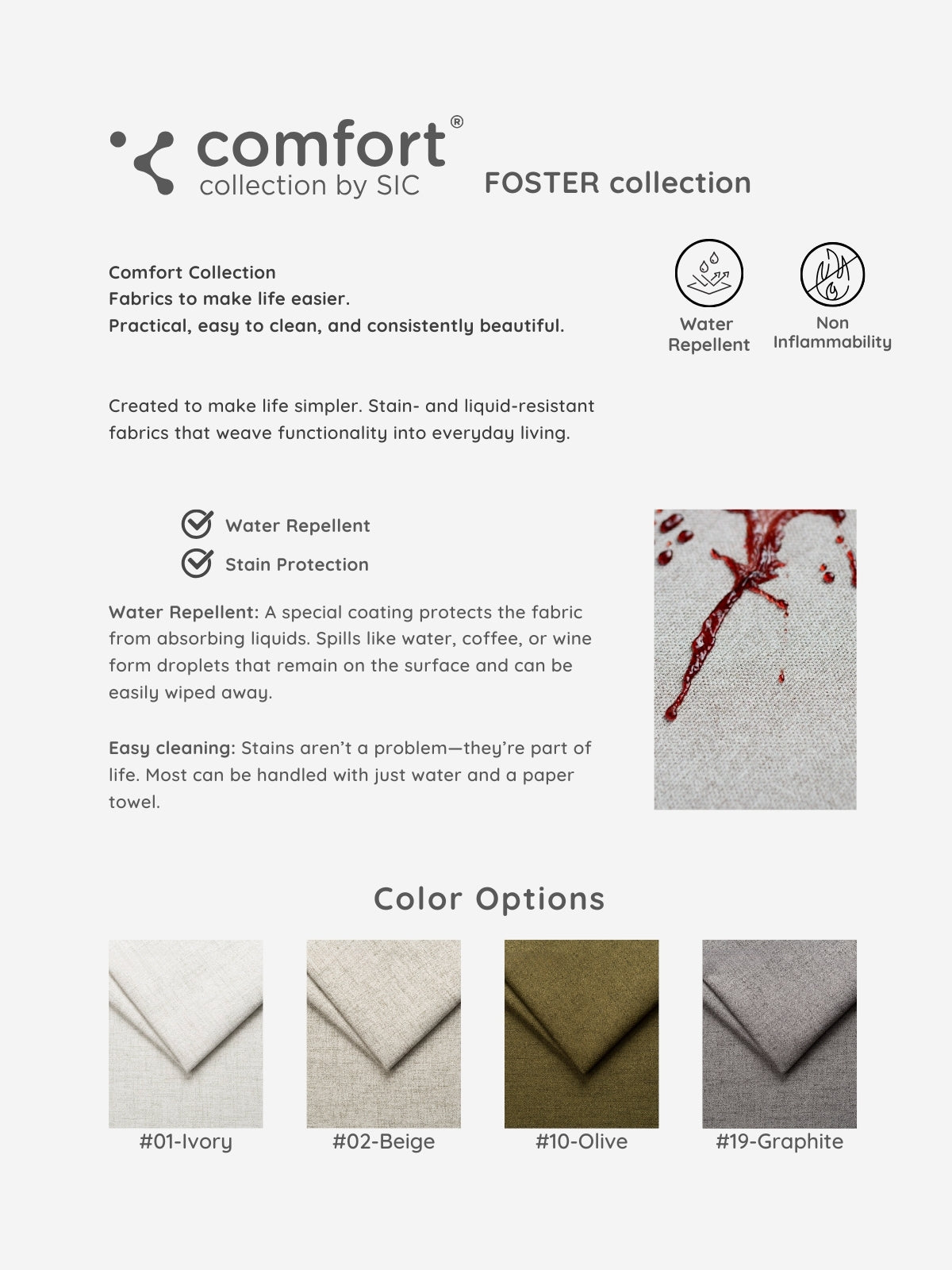 Stain Protection is an intelligent fiber shield that makes stain removal easy without damaging the fabric’s structure. An innovative finish ensures that stains—from coffee, tea, or juice to pen marks, ketchup, or oil—can be removed in just a few simple steps.