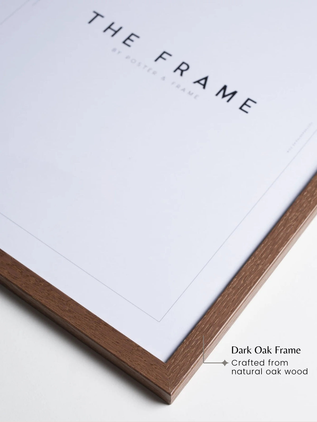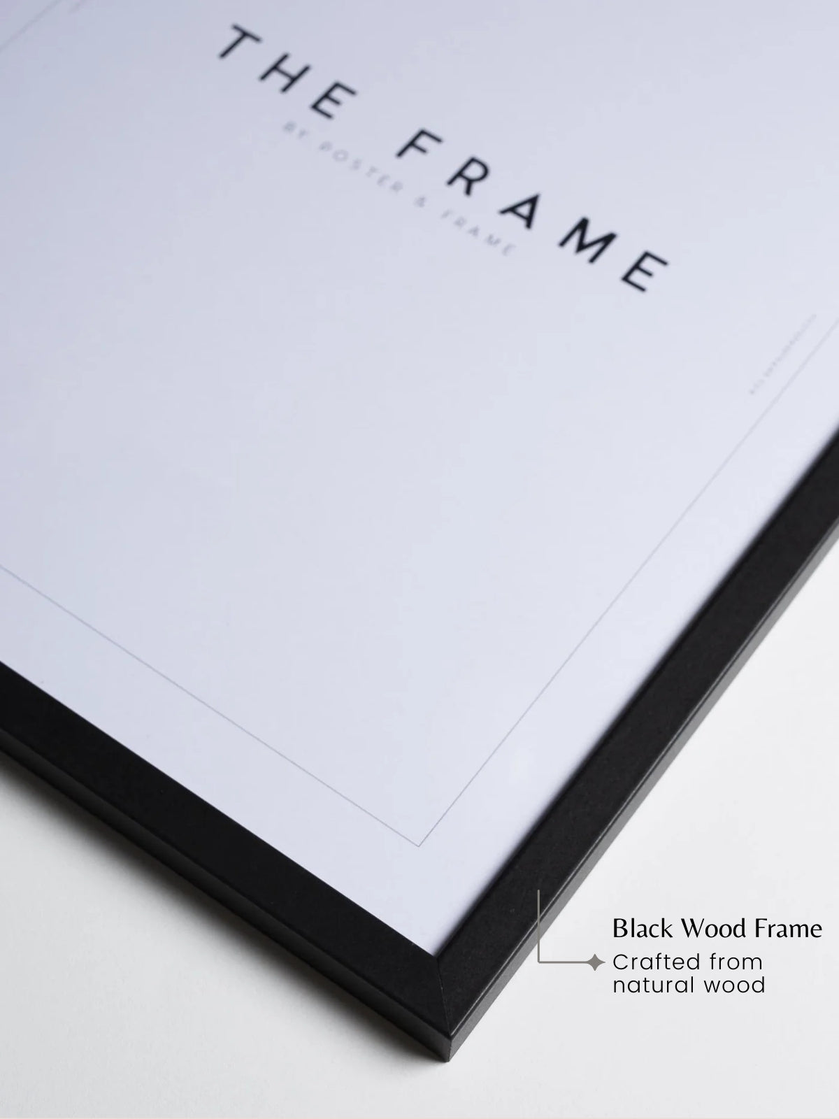 Choose from a spectrum of finishes—classic Oak, deep Black, bright White and dark oak. Whether paired with abstract prints or nature-inspired posters, wooden frames offer depth and harmony.