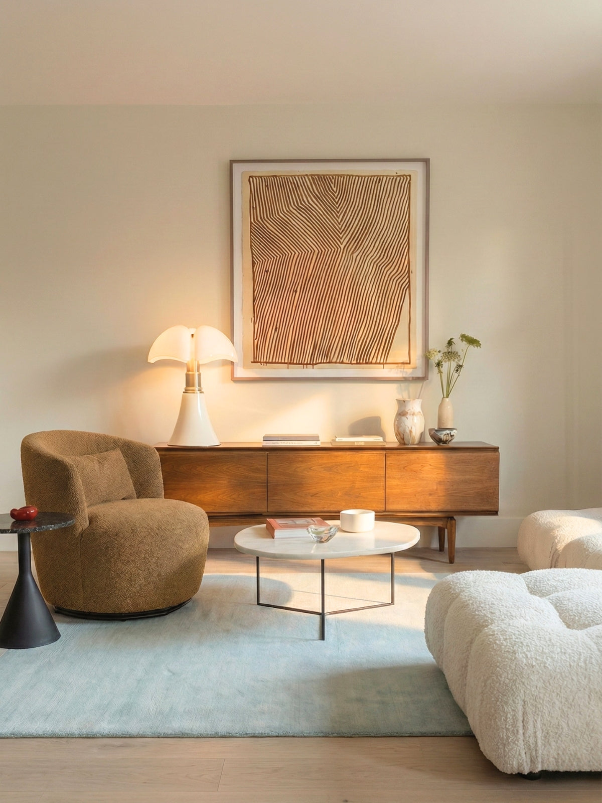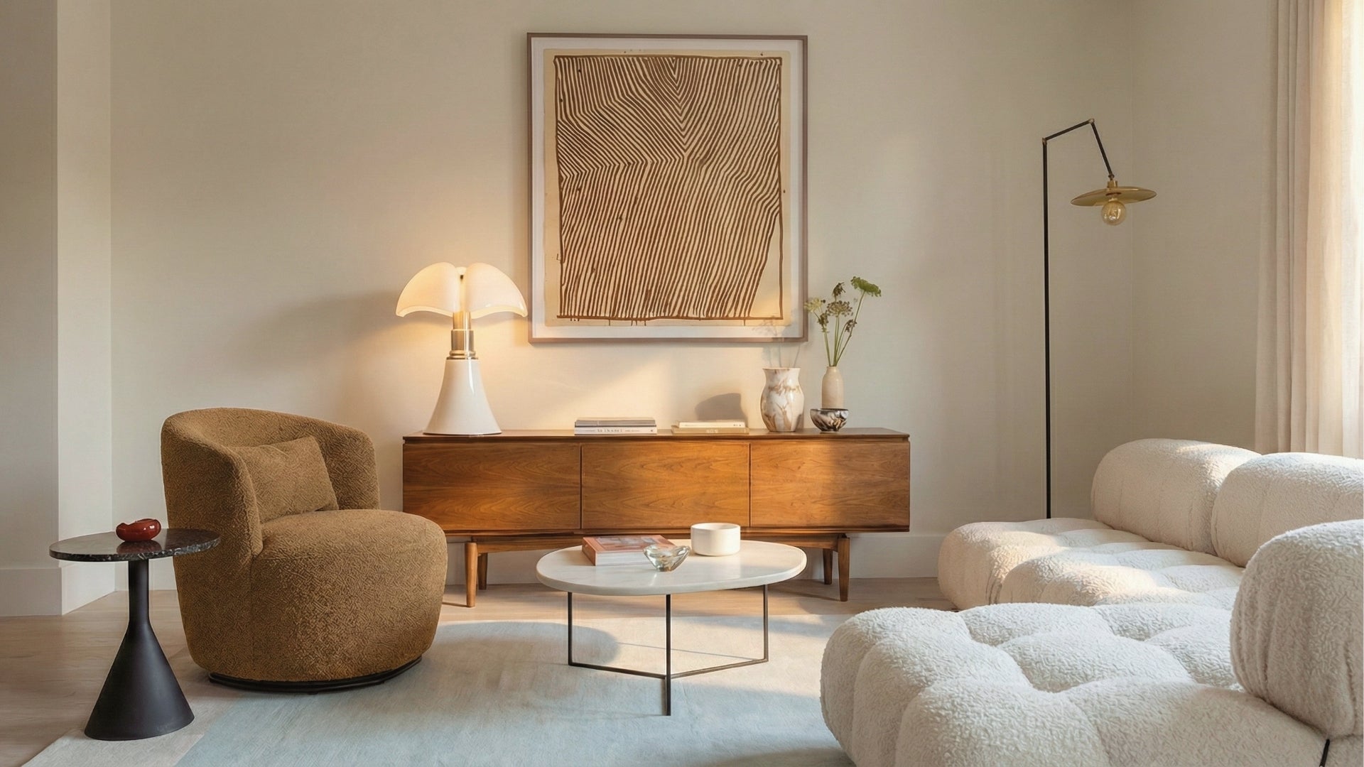 Experience the art of flow with the NOIR CURVA Modular Collection. Designed for infinite versatility, these sculptural, bouclé-wrapped modules allow you to curate a bespoke living landscape. With organic curves and deep, tactile comfort, this system softens the modern home, blending architectural elegance with a grounded, serene aesthetic.