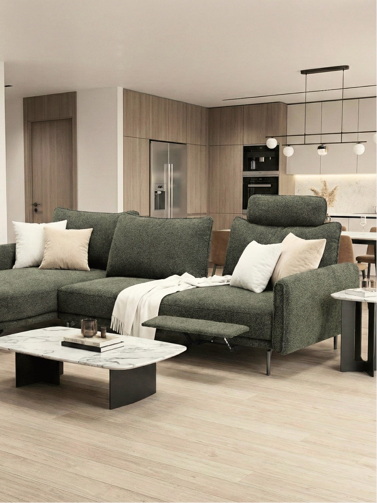 Space-Savvy Configuration: The 2.5-seater plus chaise layout offers generous seating for guests while maximizing corner space in open-plan living areas.