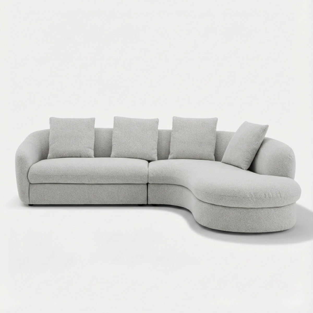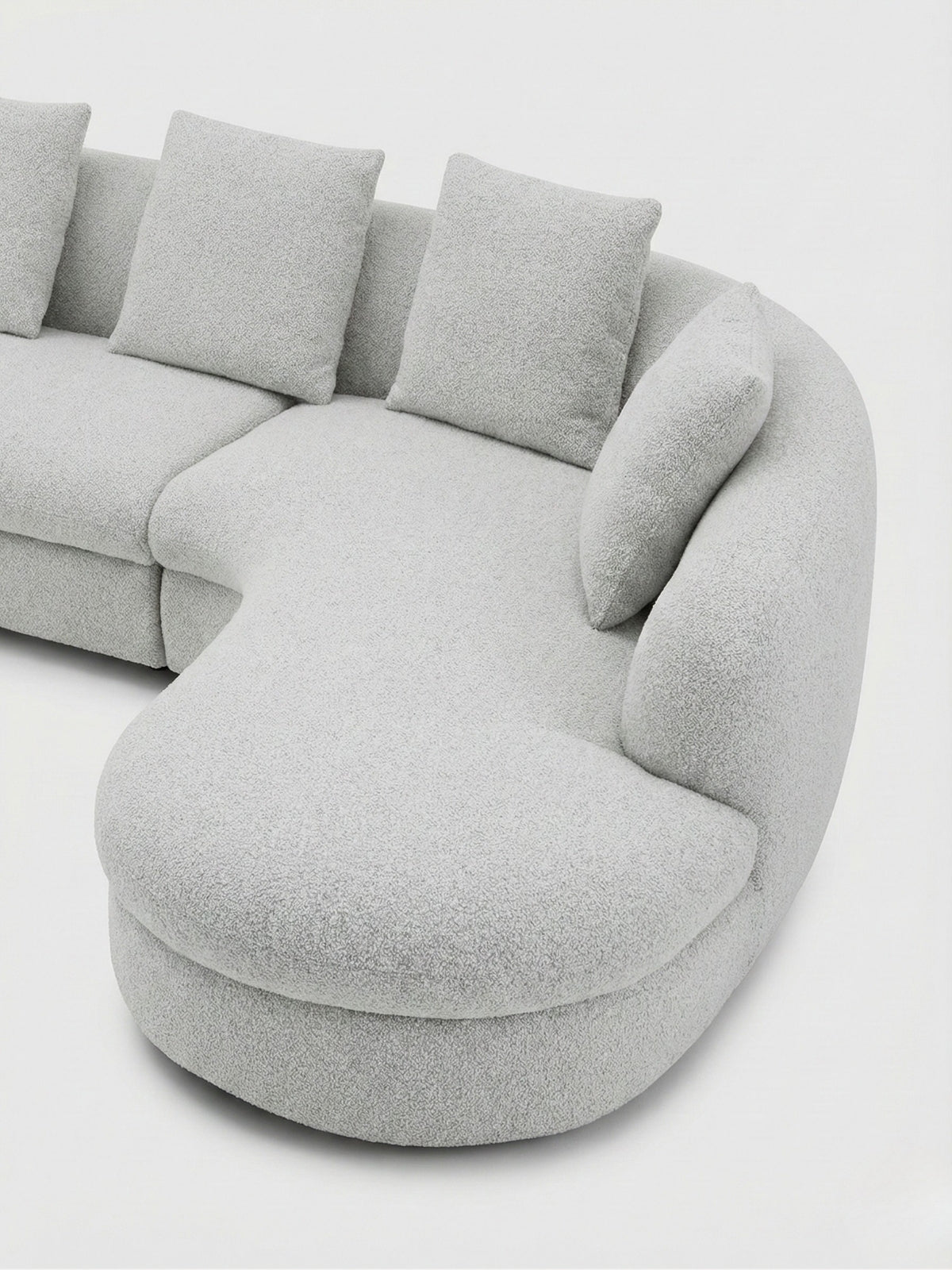 Experience the art of flow with the NOIR CURVA Modular Collection. Designed for infinite versatility, these sculptural, bouclé-wrapped modules allow you to curate a bespoke living landscape. With organic curves and deep, tactile comfort, this system softens the modern home, blending architectural elegance with a grounded, serene aesthetic.
