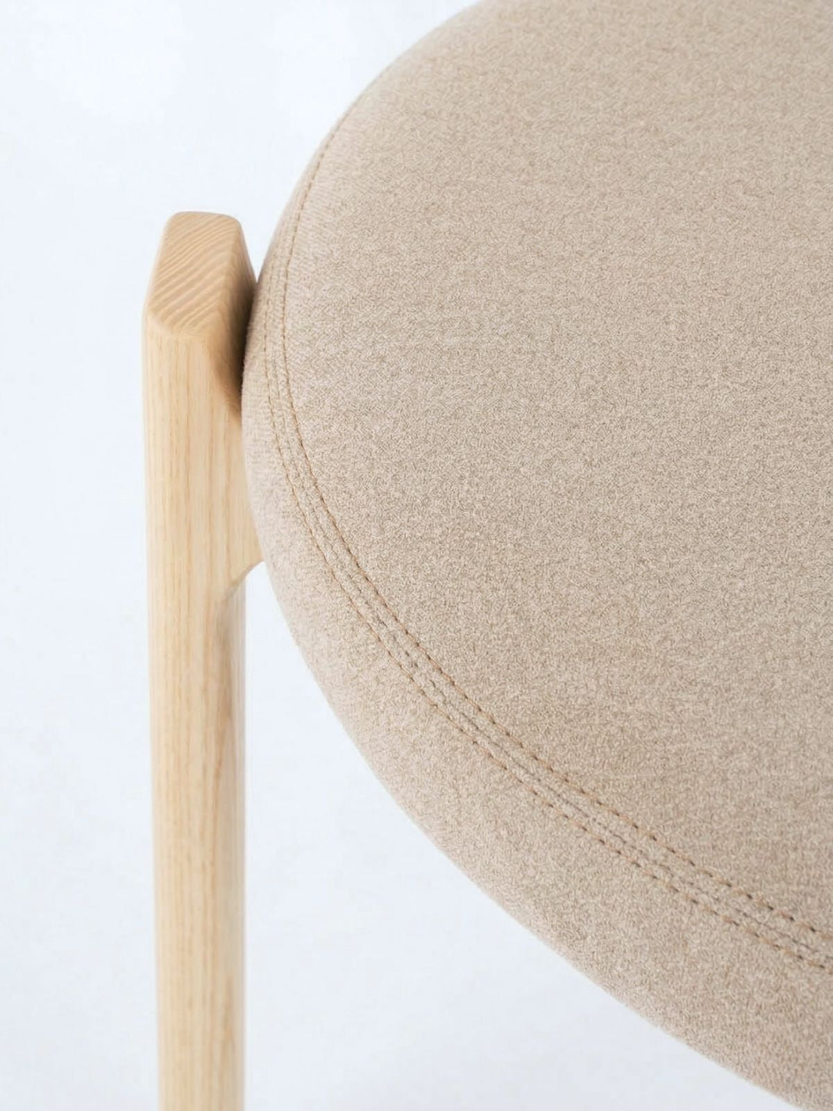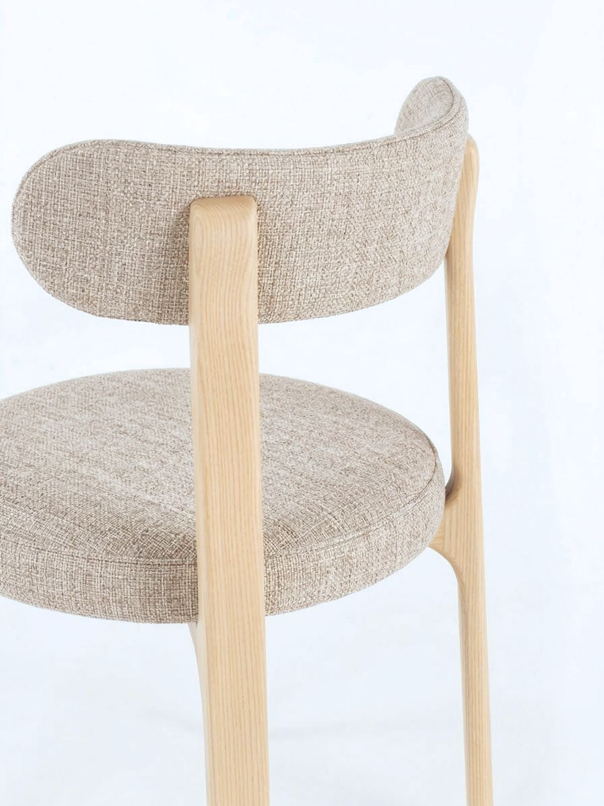 材料實心美國白蠟木、40 密度高回彈性 (HR) 泡棉和優質純素皮革 / 精緻亞麻混紡