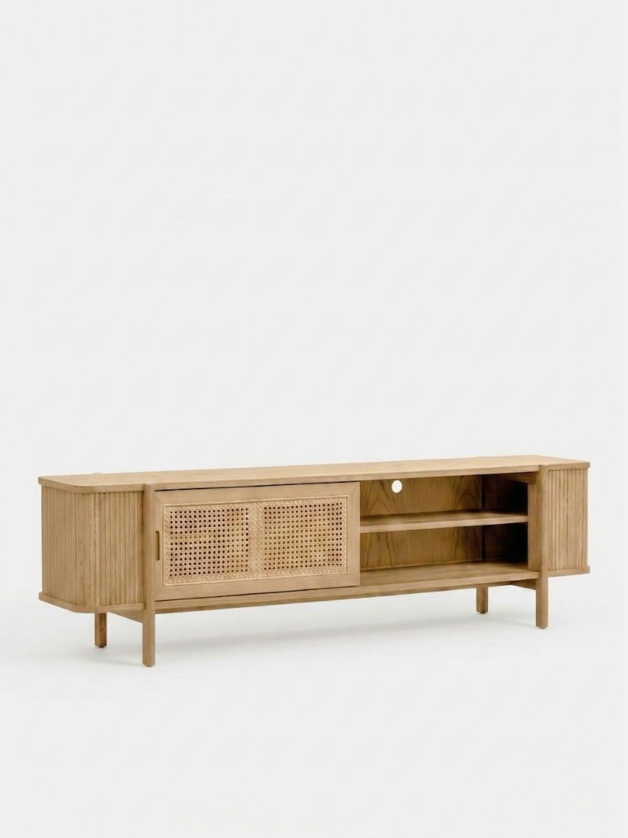 這款SEN藤編電視櫃由印尼工匠手工打造,限量販售。它巧妙地融合了實心白蠟木、白蠟木貼皮、天然藤條和拉絲黃銅。滑門設計方便靈活擺放,而靈感源自日式北歐風格的簡約有機設計,則能為客廳或影音室增添光彩,將實用收納功能與精緻的手工美學完美結合。